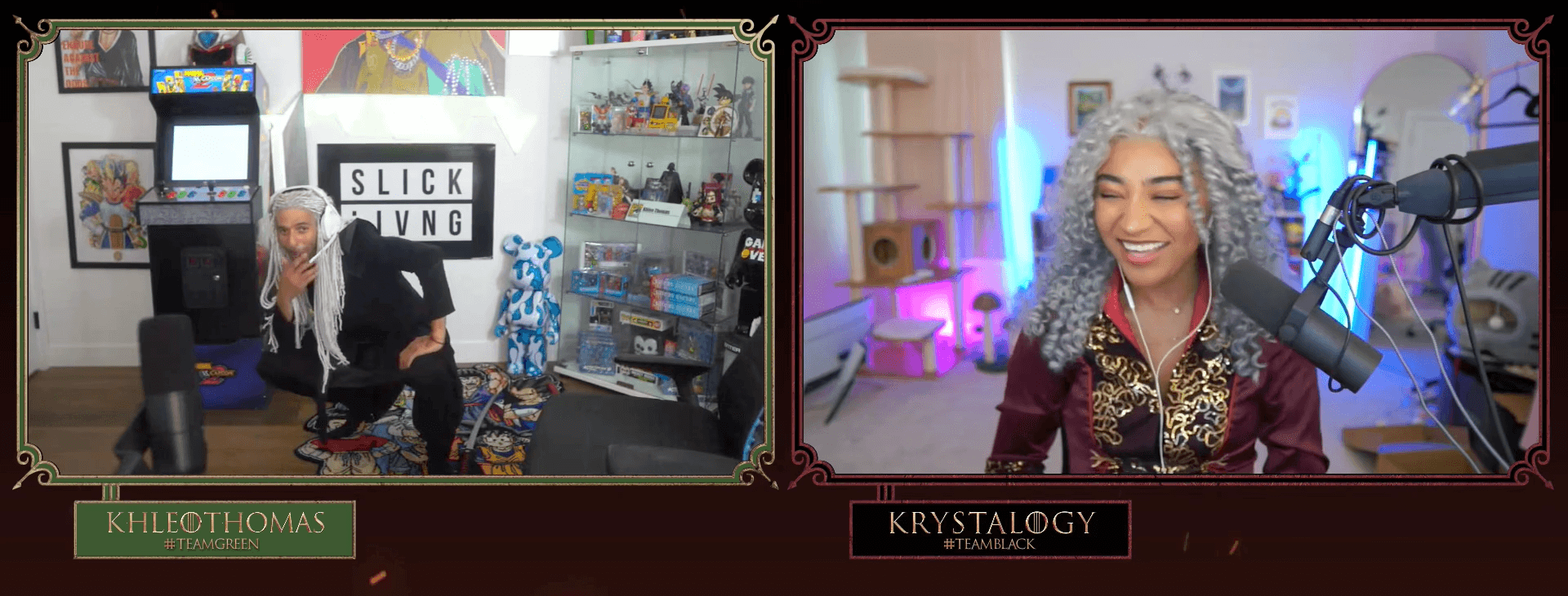We created a custom extension to allow streamers to pit their chats against each other as Team Green or Team Black. The chats were rallied to spam chat and vote periodically throughout the streams, with a winner being declared after each round and winning free subs. To get everyone even more excited we dressed the streamers up in show-quality Targaryen wigs and costumes.